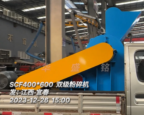 SCF400X600小型雙級(jí)粉碎機(jī)發(fā)往江西宜春客戶用于爐渣的粉碎:(附裝車發(fā)貨現(xiàn)場(chǎng))